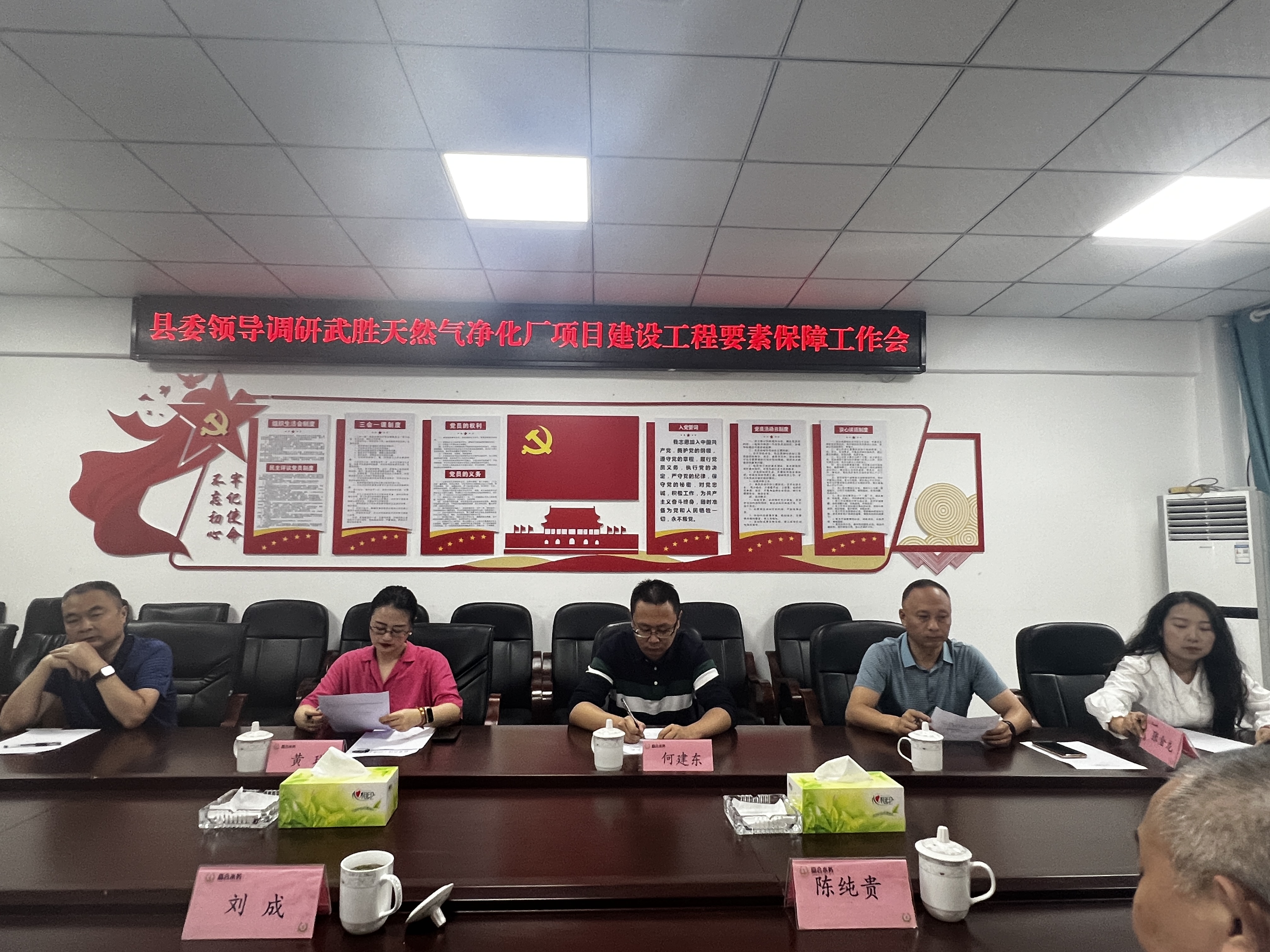 6月7日下午,县委副书记黄璜带领天然气专班一行4人到我司调研企业运营管理及天然气净化厂项目供水相关事宜。光明集团副总经理刘成及嘉合水务相关人员参加会议。