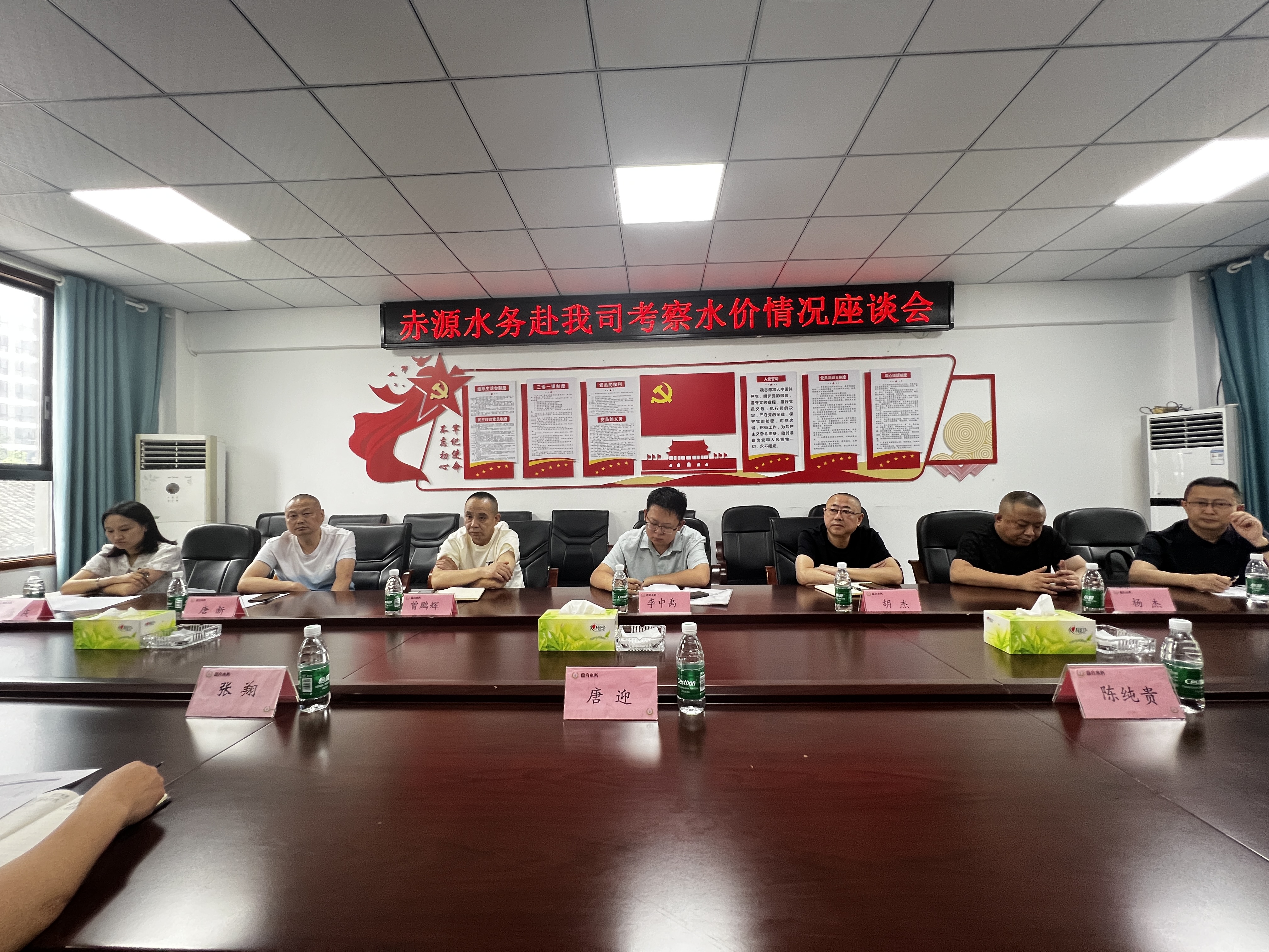 近日,蓬溪县发改局副局长李中禹带领赤源水务副总经理胡根元一行赴我司考察交流。