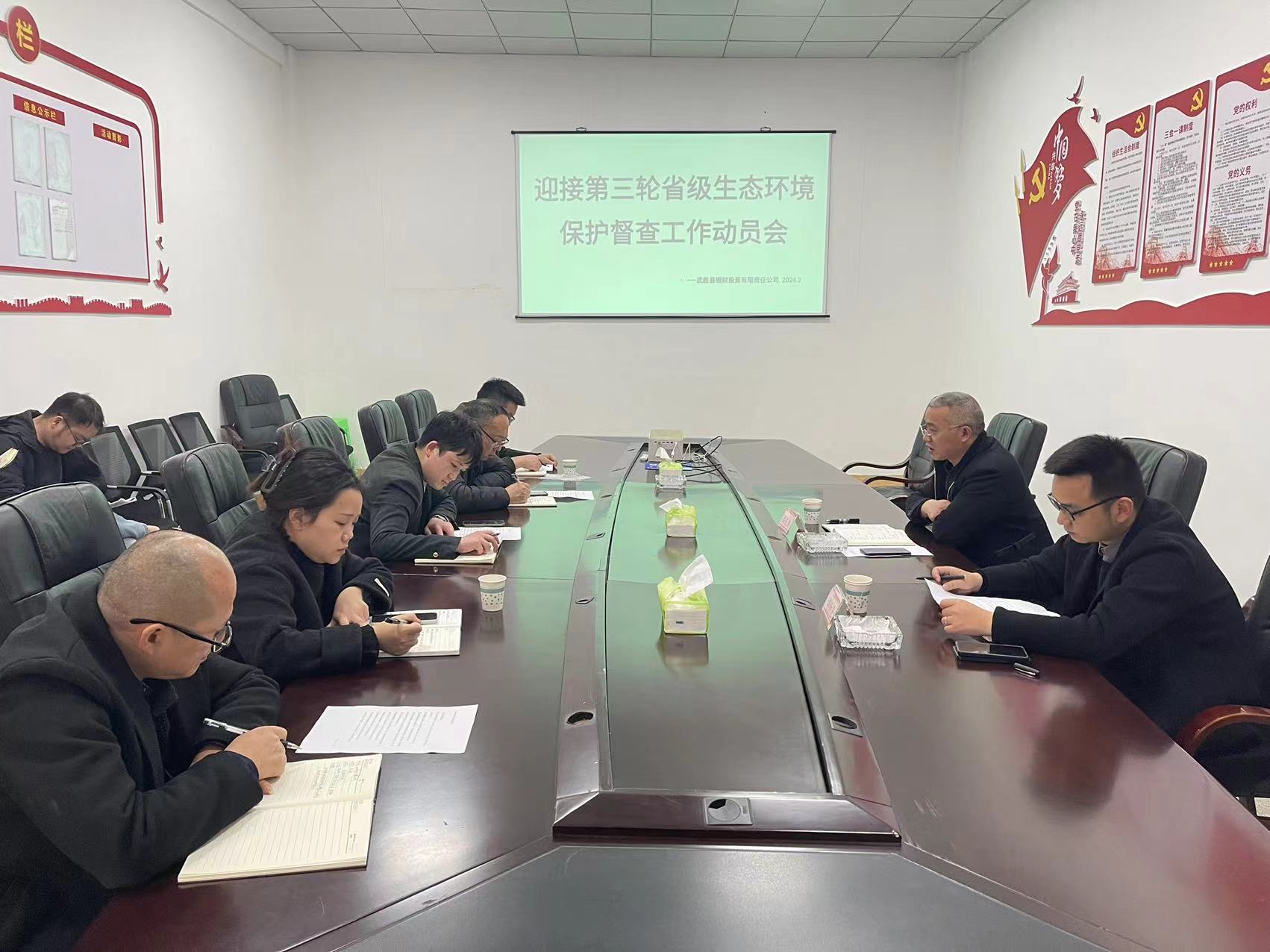 3月15日下午,银财公司副总经理高克勇主持召开了迎接第三轮省级生态环境保护督察工作动员部署会,资产部、项目部、安全办公室、综合部参加会议。