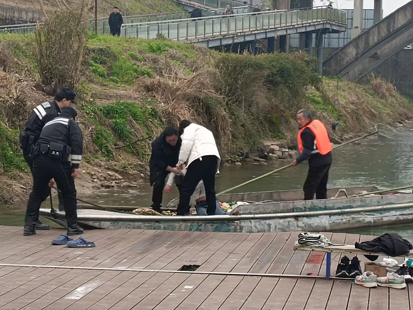 3月3日早上9点8分,“光明之星”邮轮工作人员在船尾进行日常巡视时,发现大桥上有黑影落下遂立即呼唤同事汤达观察水面情况,5秒后发现有物体浮出水面,确认是有人落水,现场工作人员迅速反应,解开船缆启动印山