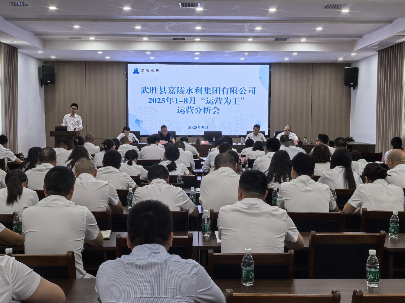 2025年9月25日下午,嘉陵水利集团召开2025年1-8月“运营为王”运营分析会,会议由集团党委副书记、总经理文勇主持,集团班子成员、部门负责人,子公司班子成员及相关人员参加会议。